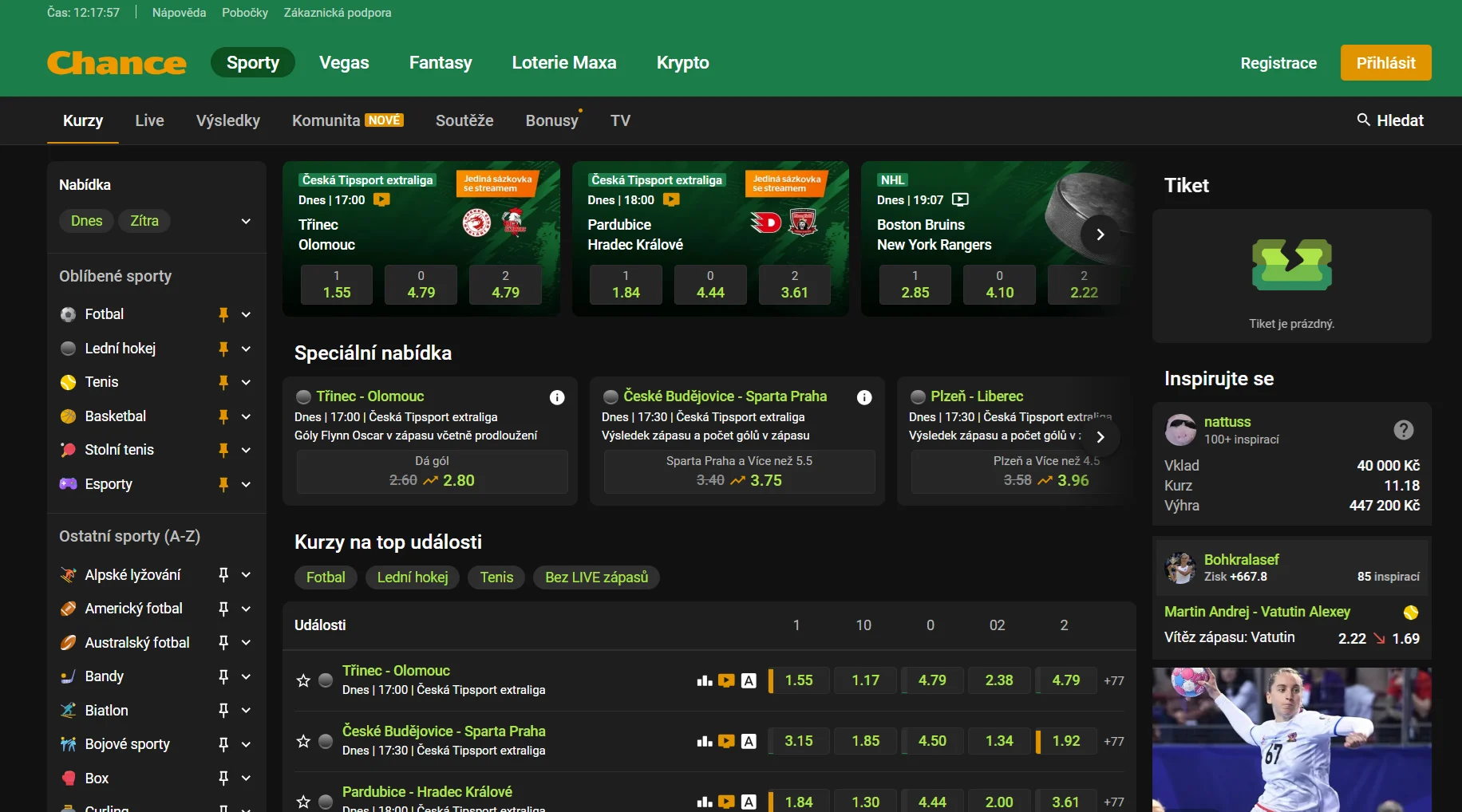 - TV Chance: Tisíce přenosů z řady sportů. Stačí se přihlásit do herního účtu.