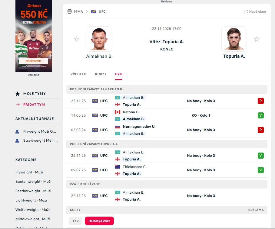 - 3.Nejpopulárnější sázky na MMA a jejich vysvětlení