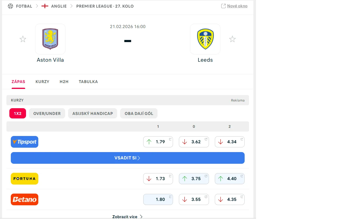 - 1.Náš výběr nejlepších volných sázek v ČR