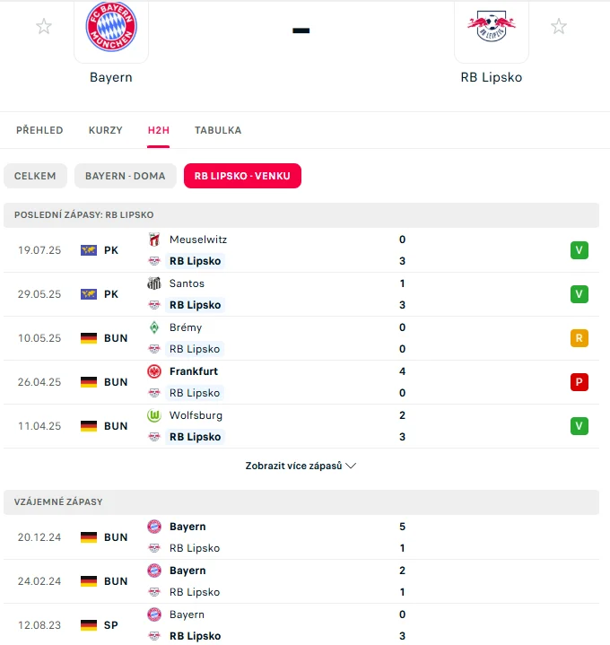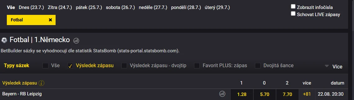 - Zápas: Bayern Mnichov – Lipsko.
